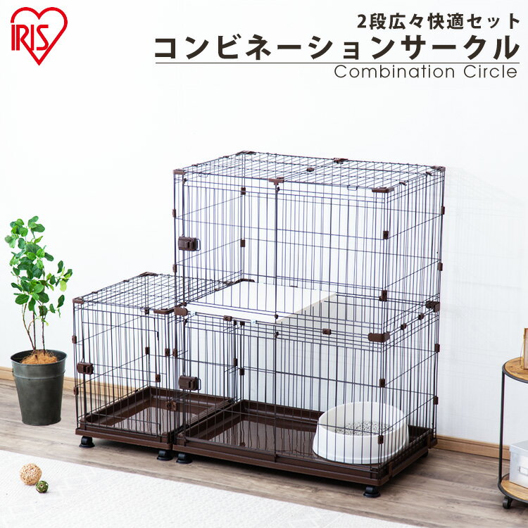 Amazon 猫 ケージ コンビネーションサークル にゃんこ向け 2段 スペース付きセット アイリスオーヤマ アイリスオーヤマ Iris Ohyama サークル プレイサークル 通販