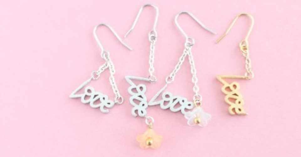 親子コーデ Loveと花のアシンメトリなピアス イヤリング 一点もの Nemomo Note