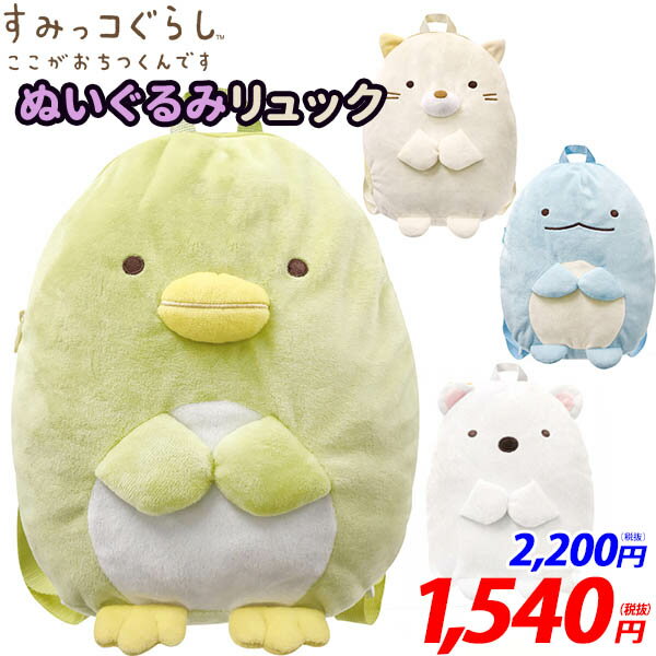 すみっコぐらし リュックサック ぬいぐるみ。すみっコ ぬいぐるみ リュック 2 {すみっコぐらし すみっこ すみっこぐらし リュックサック ペンギン ねこ とかげ 人気 キャラクター 女の子} ファンシー l28.